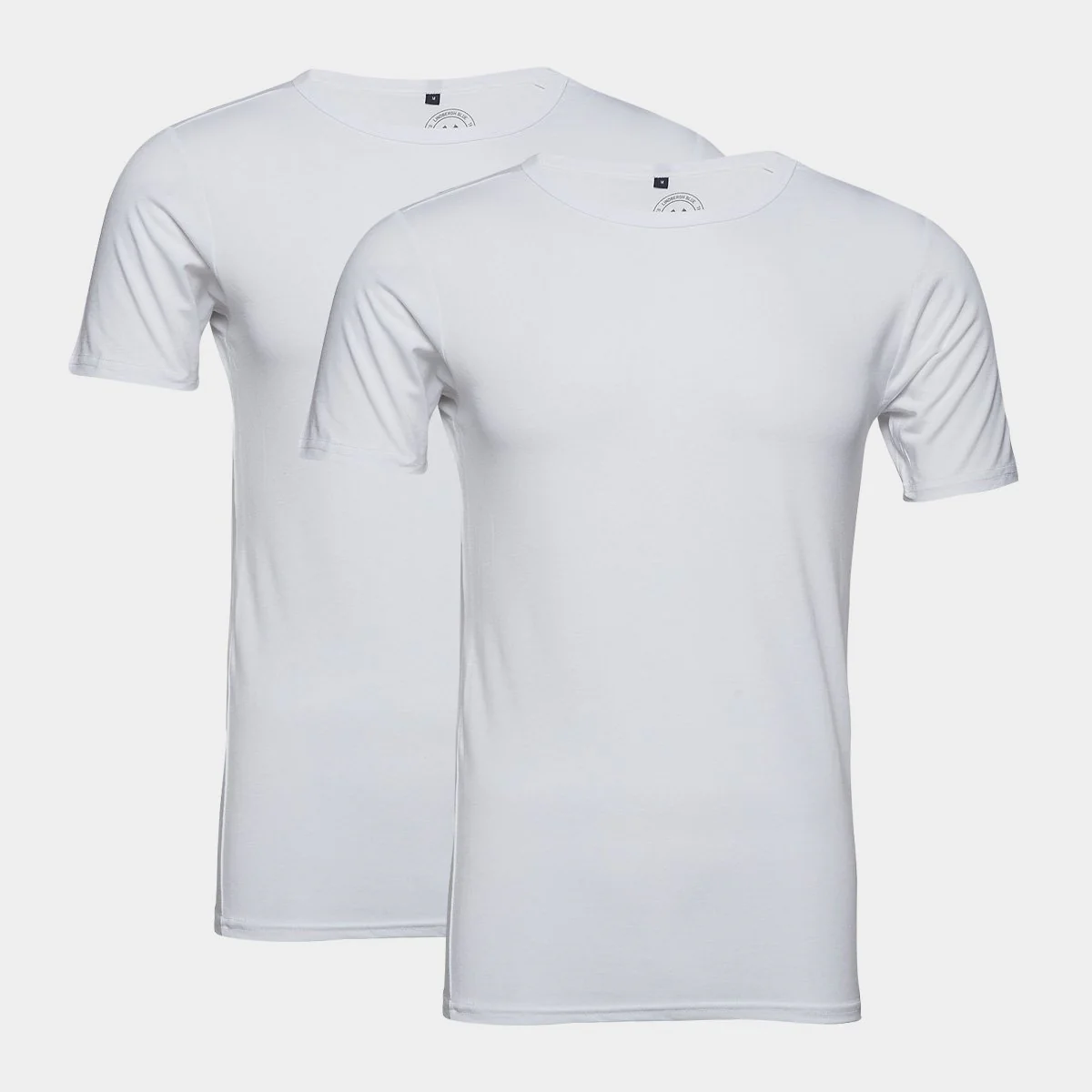 Dubbla upp med en supercool Lindbergh vit bambu slim fit T-shirt i detta 2-pack, som sitter tätt intill kroppen och har en rund halsringning. Denna läckra bas-T-shirt är underbart mjuk att ha på sig, men också andas, absorberar och temperaturreglerar så att du kan ta dig igenom dagen bra.