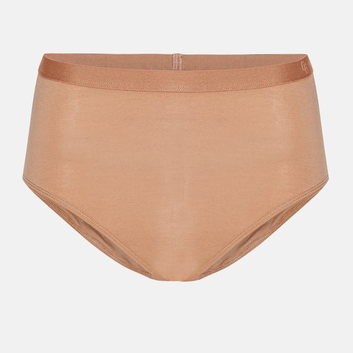 Dessa tan nude maxi trosor från Copenhagen Bamboo har hög midja och bra täckning baktill.
