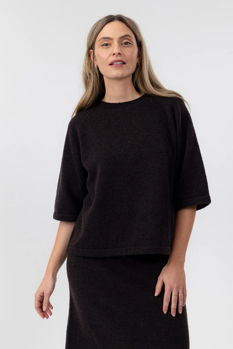 Boxig utanpåtröja med raglanärm i mjuk ull.