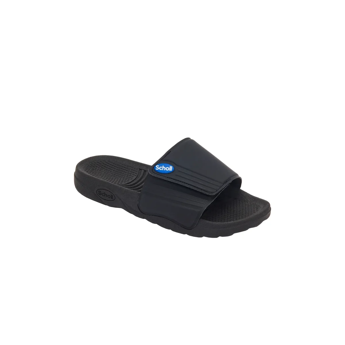Scholl Nautilus – Svart Unisex är en lätt och smidig badsandal från Scholl med reglerbart kardborrspänne som håller fötterna fräscha och torra.