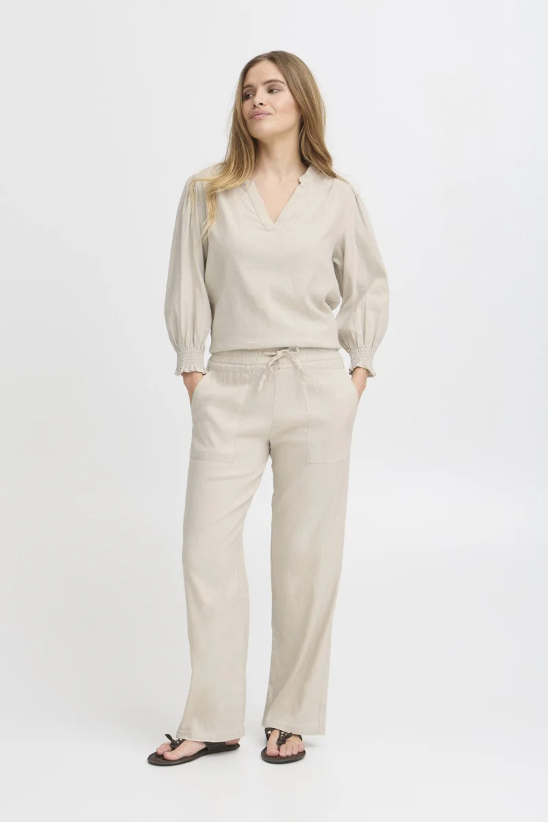 Härlig byxa med rakt ben, fickor och resårmidja.