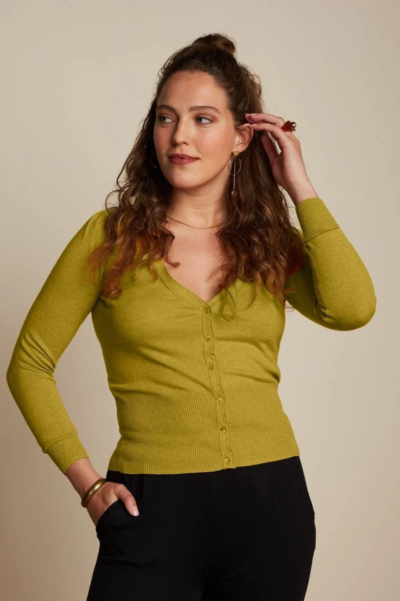 Mjuk tunn kofta med spets i halskanten, Liten puffärm och pärlemoknappar.