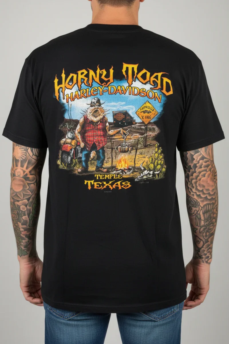 T-shirten passar både herr och dam och är lätt att matcha med jeans, skinnjacka eller hoodie för en komplett biker-look. Materialet är mjukt, slitstarkt och bekvämt för både vardag och motorträffar. Den ikoniska Harley‑Davidson‑inspirerade designen gör den till ett statement-plagg som sticker ut i varje outfit.