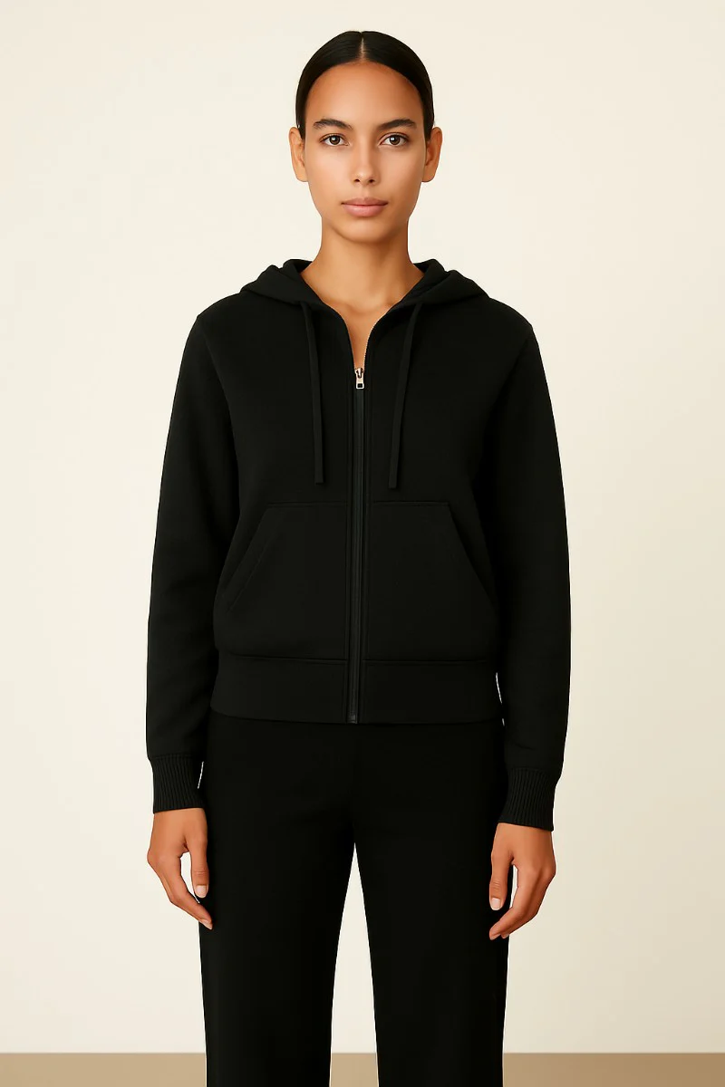 Mhuk hoodie med blixtlås, luva och snoddar. En lyxig variant på luvtröja.