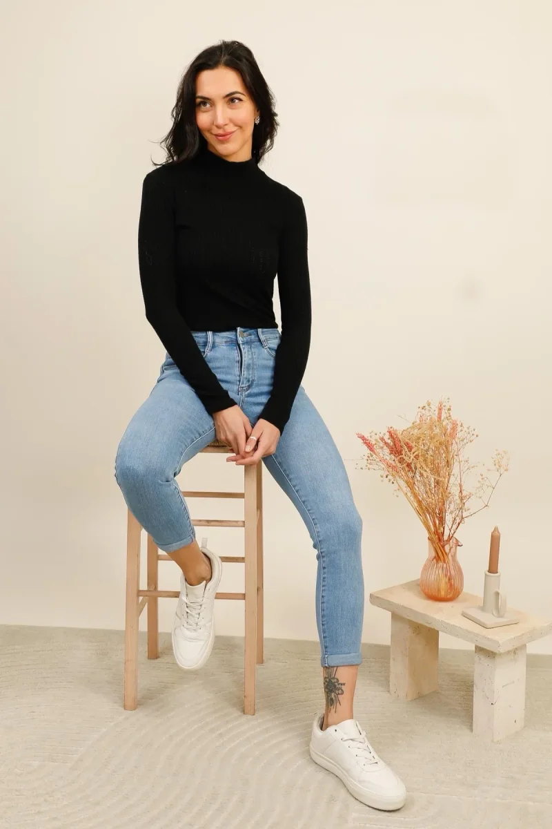 Den klassiska mellanblå tvätten är lätt att matcha och passar perfekt till allt från enkla toppar och stickade tröjor till skjortor och blusar. Modellen fungerar lika bra till sneakers för en avslappnad vardagslook som till boots eller klackar för en mer uppklädd stil.