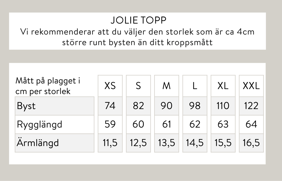 En V-ringad, stretchig topp i en fin brun färg. Dessa snygga toppar är lite längre i modellen och melerade i tyget. Topp från JOY Essential Item. Vår modell Yasmine är 163 cm och har storlek S på sig. Jolie i färgen brun är mindre i storleken än de andra färgerna och har en kortare ärm som framgår av produktbilderna. Är du mellan storlekar kan du behöva gå upp i storlek.