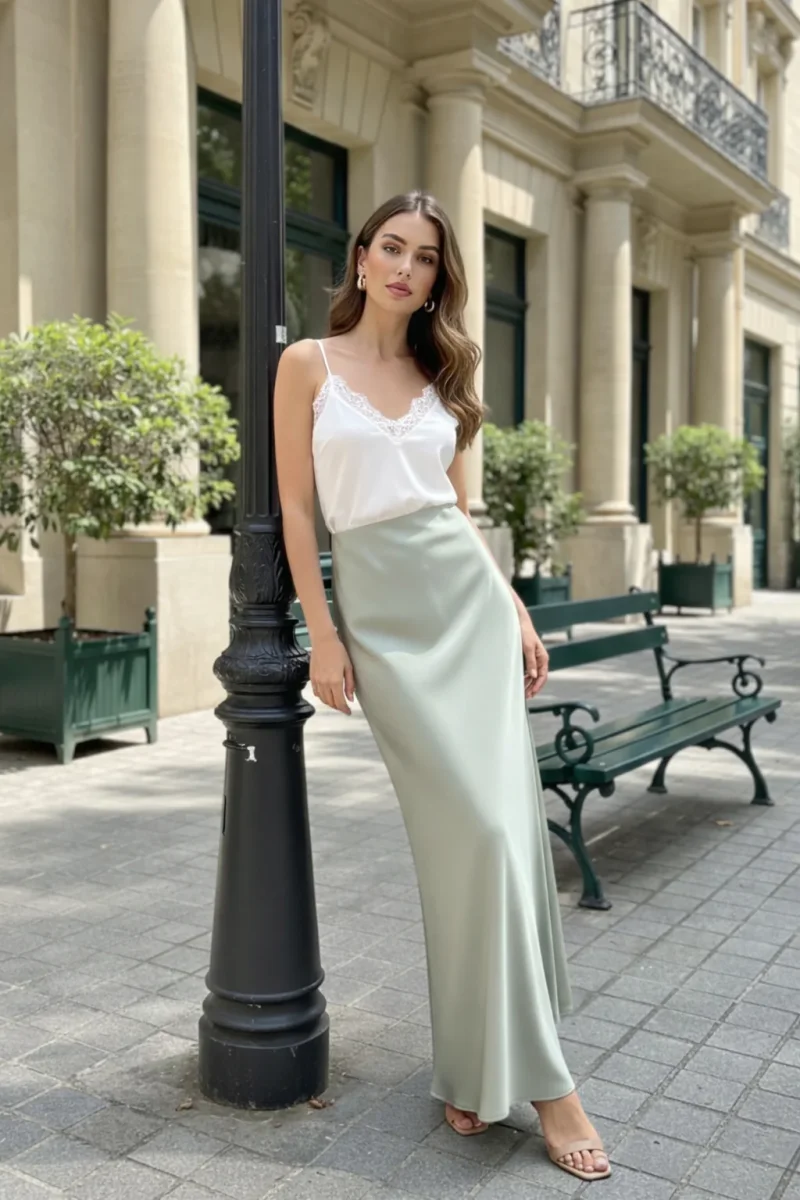 Kjol Jolly i ljusgrön är en elegant och stilren maxikjol med ett mjukt, följsamt fall som ger en feminin och sofistikerad siluett. Den ljusgröna nyansen ger ett fräscht och exklusivt uttryck – perfekt för både vardag och fest.