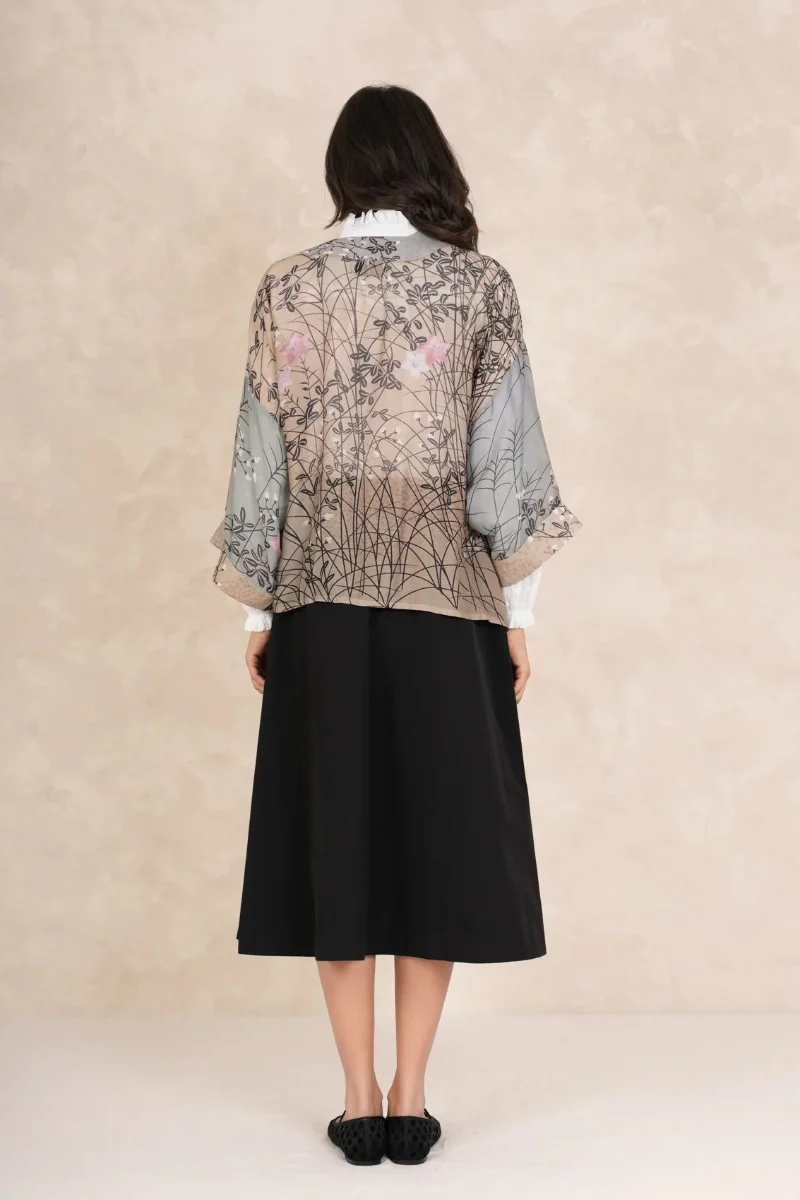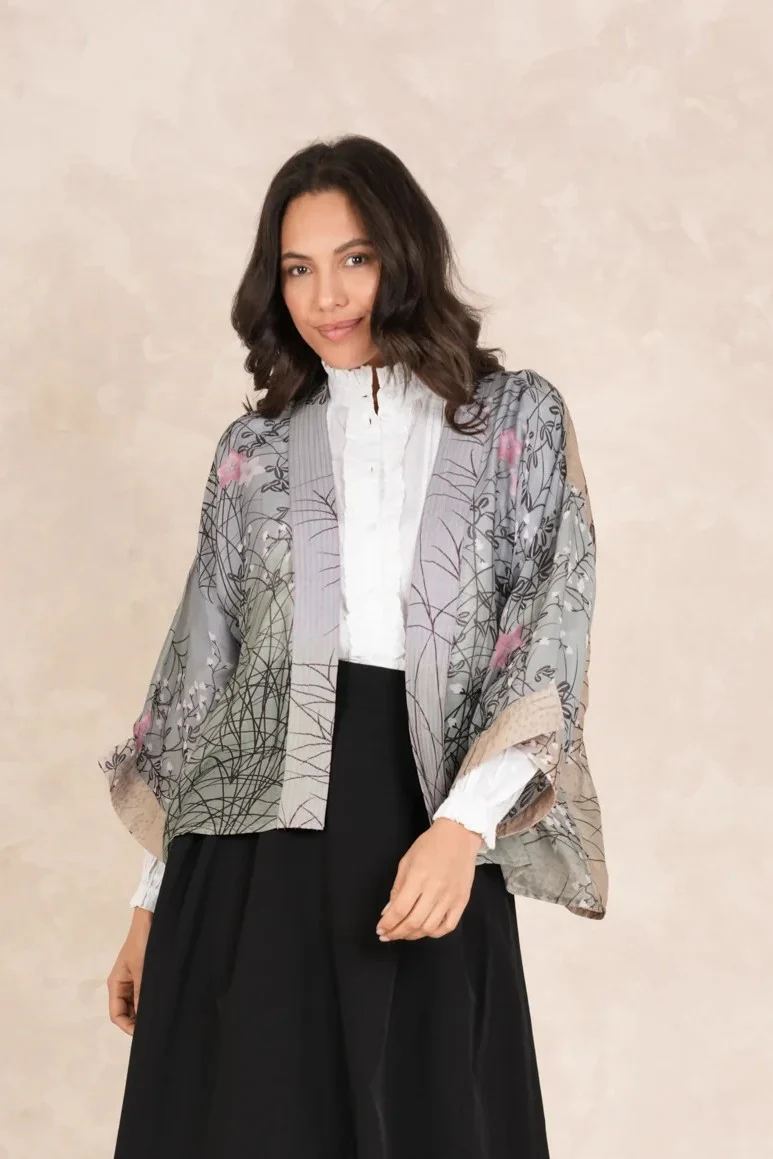 Tunn fin kimono som passar både till klänning och jeans. Den går också att dra omlott och stoppa ner i linningen. Då blir den en festblus.