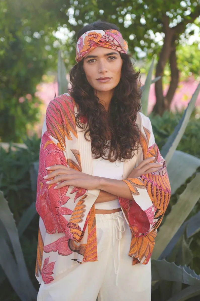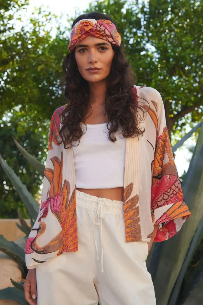 Tunn fin kimono som passar både till klänning och jeans. Den går också att dra omlott och stoppa ner i linningen. Då blir den en festblus.