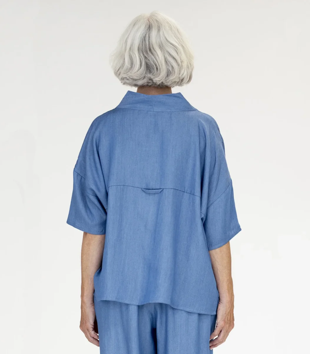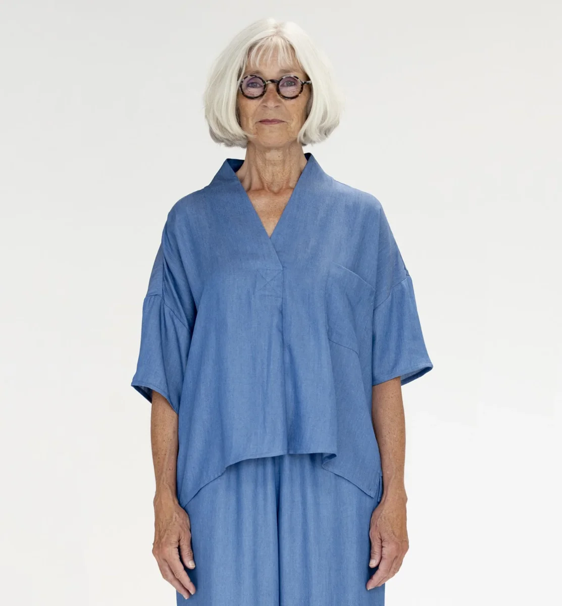 Toppen Karen från danska Muse Wear. Klassisk och oversized topp med japanskinspirerad v-ringning. Designad i danska Thy.