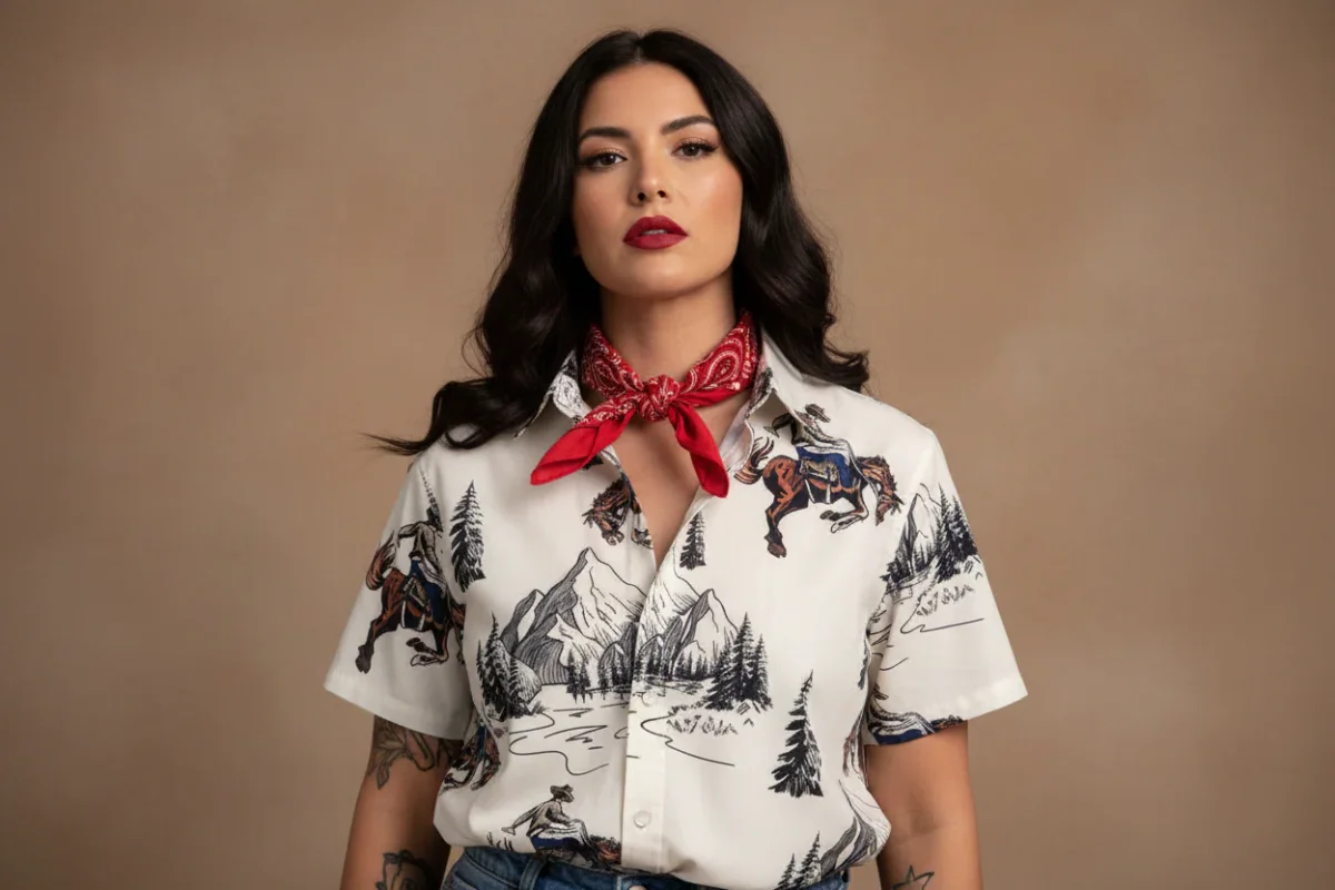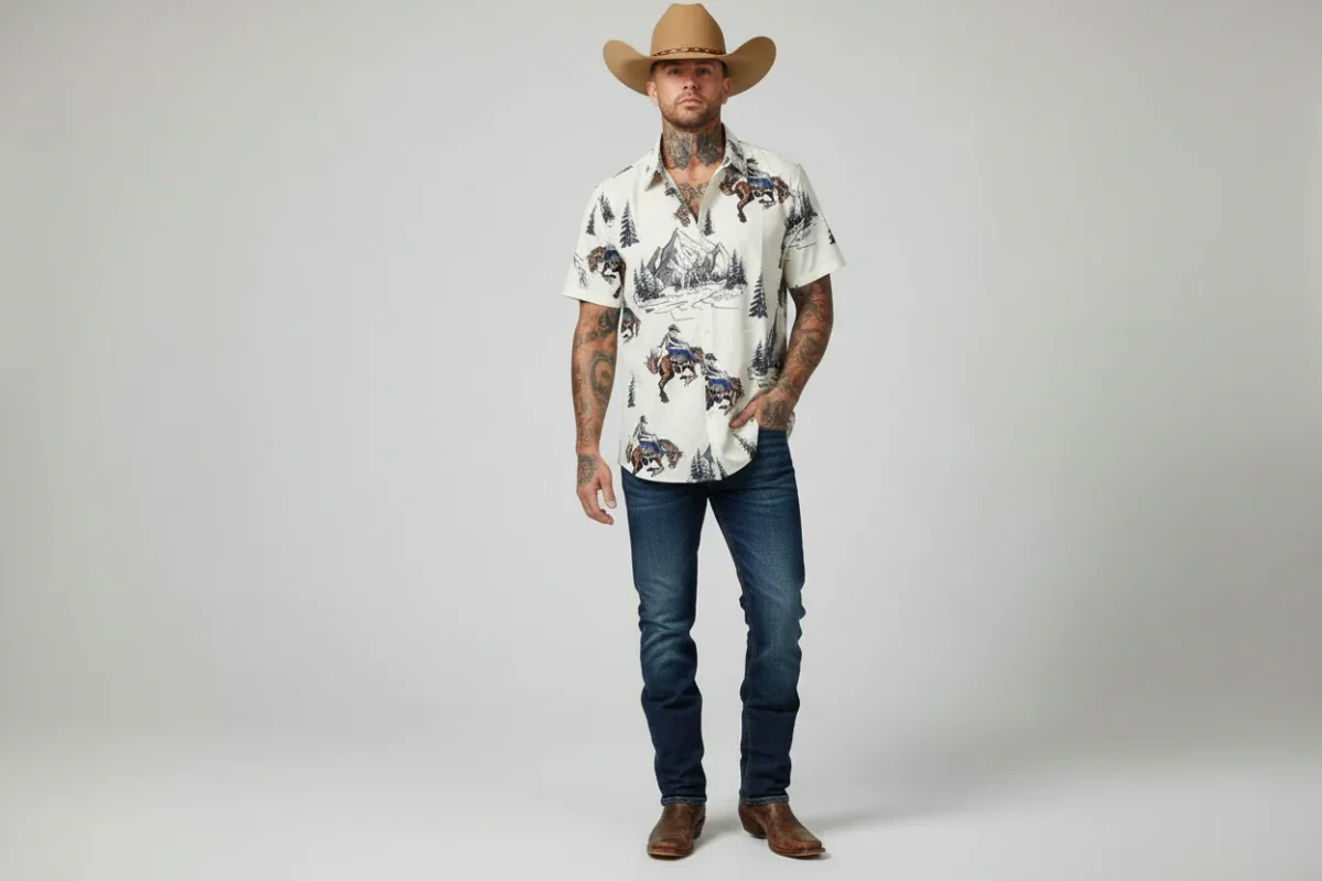 en snygg fräck hawaii skjorta i det givna cowboy western mönstret