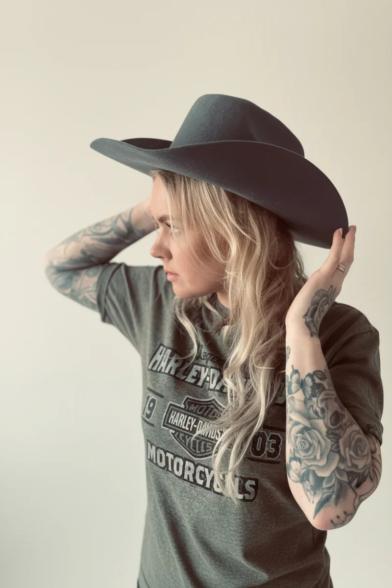 Hattarna är perfekta för motorträffar, festivaler, konserter eller vardagsstil med edge. Tillverkade i slitstarka material för lång hållbarhet, med detaljer som band, spännen och klassiska brätten som ger varje outfit en autentisk Western-look.