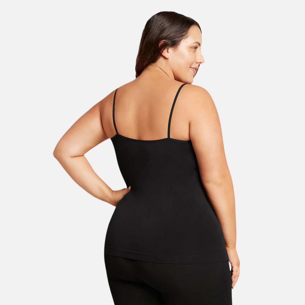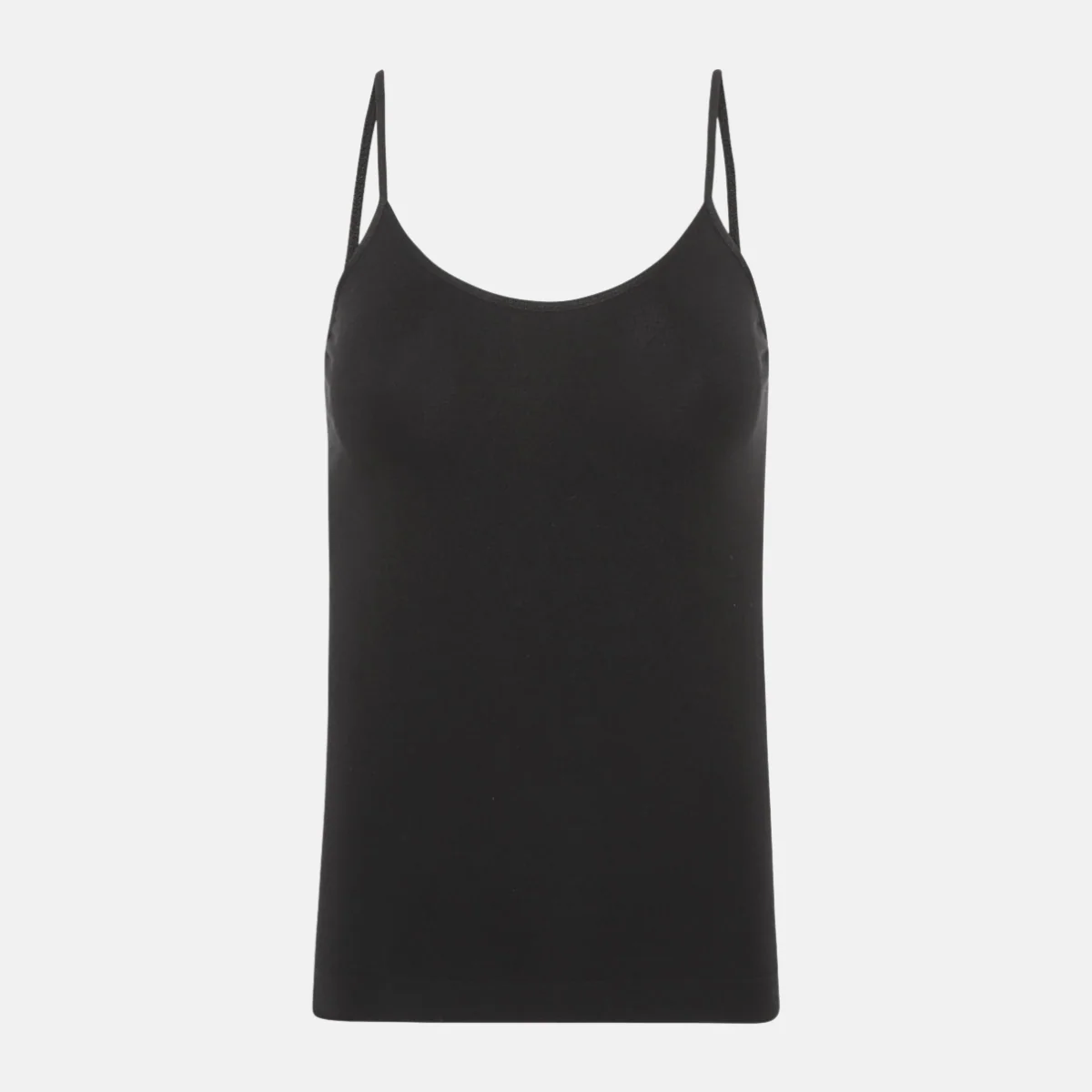 Extremt bekväm sömlös och tättslutande bambu topp med tunna remmar, från Boody. Den kan användas både som underställ och som topp till ett par jeans.