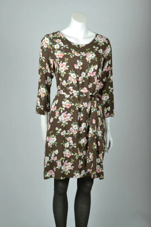 Lätt Utställd Viscoseklänning Med Sprund I Nacken, Skärp Och Fickor.