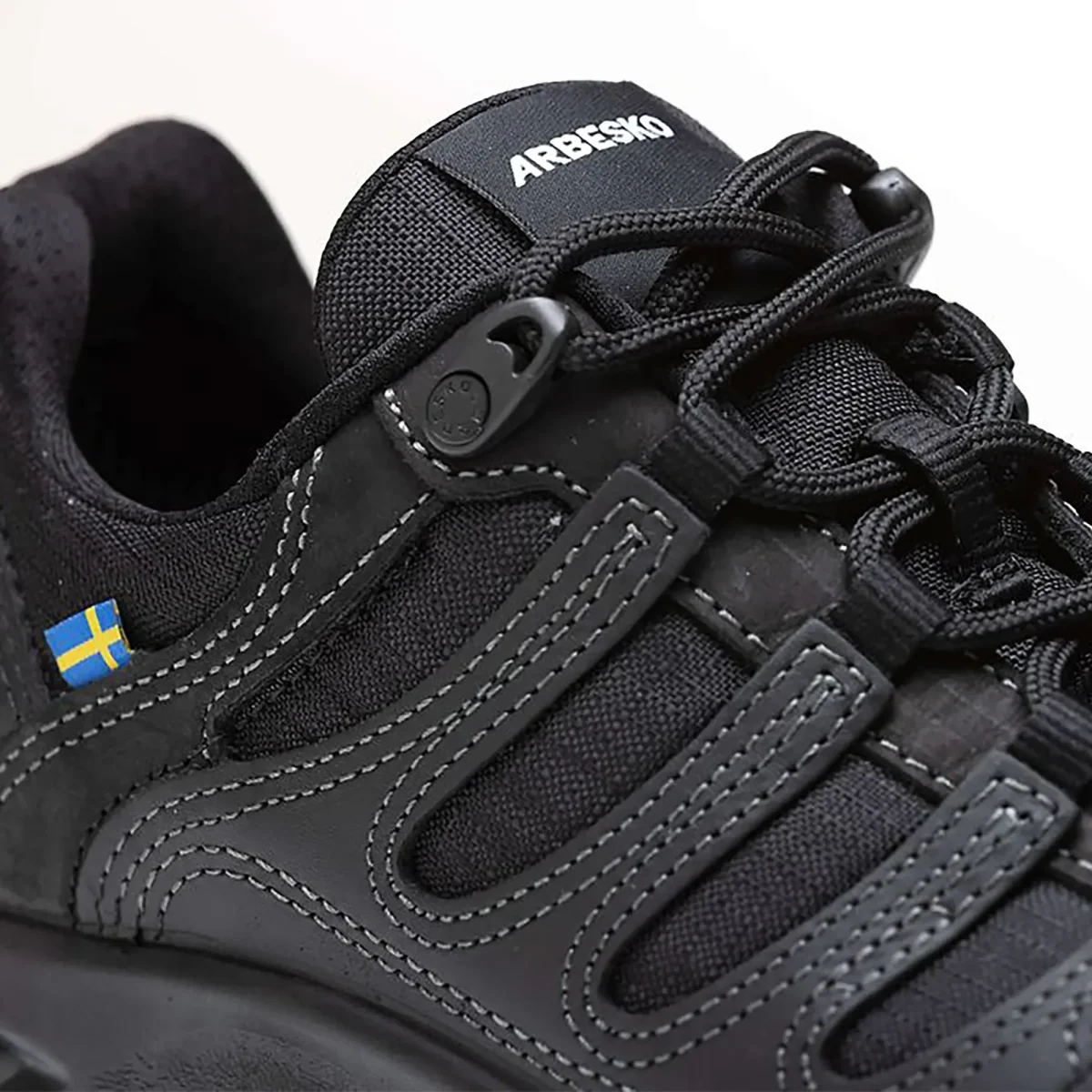 Arbesko 1355 O1 – Svart Unisex är en bekväm yrkessko i impregnerad V-8 skinn med inbyggd dubbel stötdämpning som ger arbetande fötter rätt stöd och skön komfort. Modellen är mycket rymlig i lästen och har luftig mesh i ovandelen. Materialet i den här modellen består av slitstark Cordura® som är 10 ggr starkare än bomull och 3 ggr starkare än en vanlig polyesterfiber. Skons bindsula är metallfri och har kompositgelänk i hålfoten som ger stöd och stabilitet. Arbesko Ortholite® X-40 Duo inläggssula och Energy Gel® 2.0 i klacken ger maximal stötdämpning, exceptionell återfjädring och sviktkänsla.